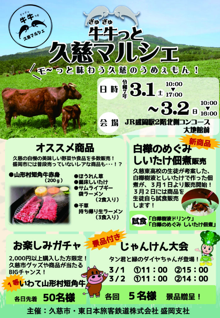 【終了しました】3/1(土)・2(日)牛牛っと久慈マルシェ/JR盛岡駅